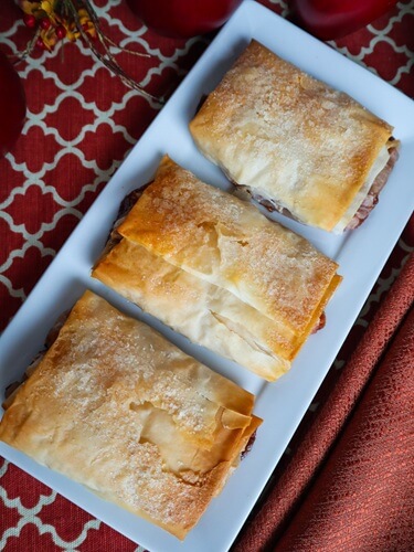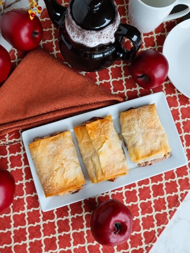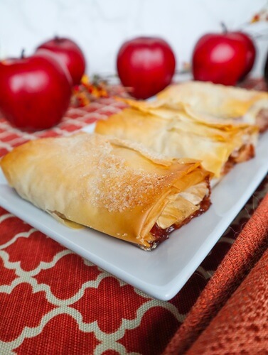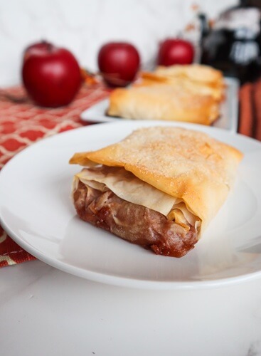 I am loving all things apple lately, and I have been making apple desserts almost every weekend since the start of the season!  So last weekend was no exception, I decided to make some apple hand pies!  Except not with the usual pie dough, with filo dough!  I have made savory ones with it in the past or individual spanokopitas and stuff, and loved the texture so I thought why not a sweet one!  These Vegan Apple Filo Hand Pies turned out so delicious I had to share them!