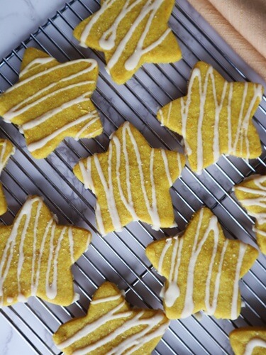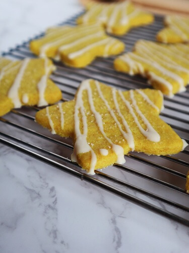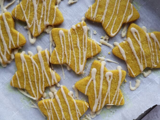 One of the things I love about shortbread is that it is quick and easy to make! Normally I just press a batch into a removable bottom tart pan and score it to make it even easier (if you do this, you’d need to bake it longer, probably 25 minutes instead of 15) but this time I decided to roll it and cut it into shapes. I thought some stars would be cute since golden milk is so yellow.