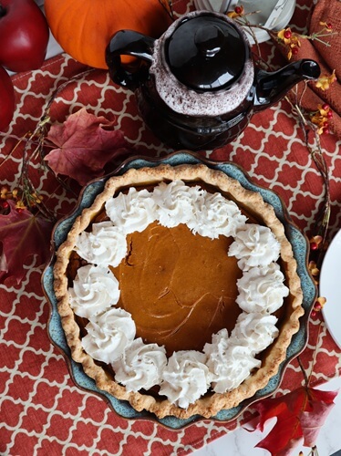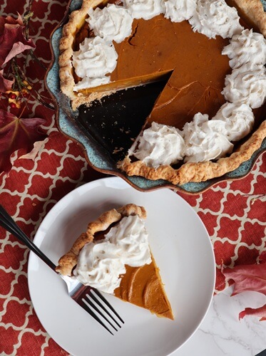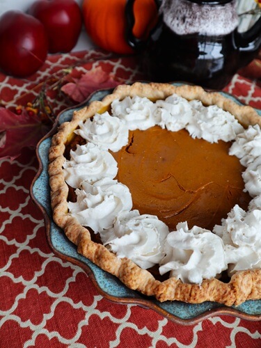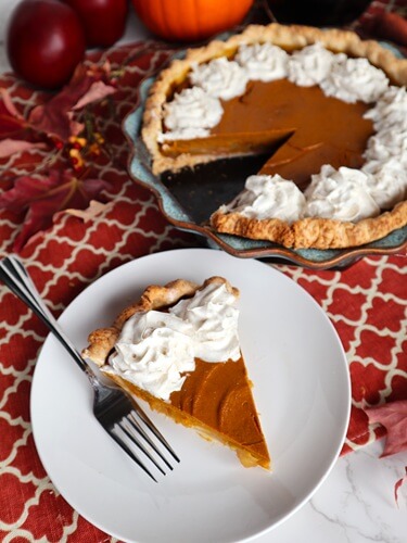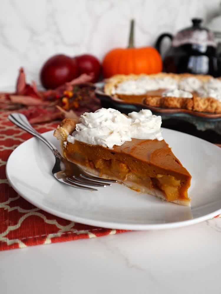 It smelled amazing while baking! Once it cooled down, I topped it off with vegan whipped cream before serving! It is so heavenly! The perfect dessert to include with your Thanksgiving spread! If you love pie, definitely give this Vegan Pumpkin Apple Pie a try!
