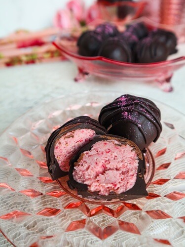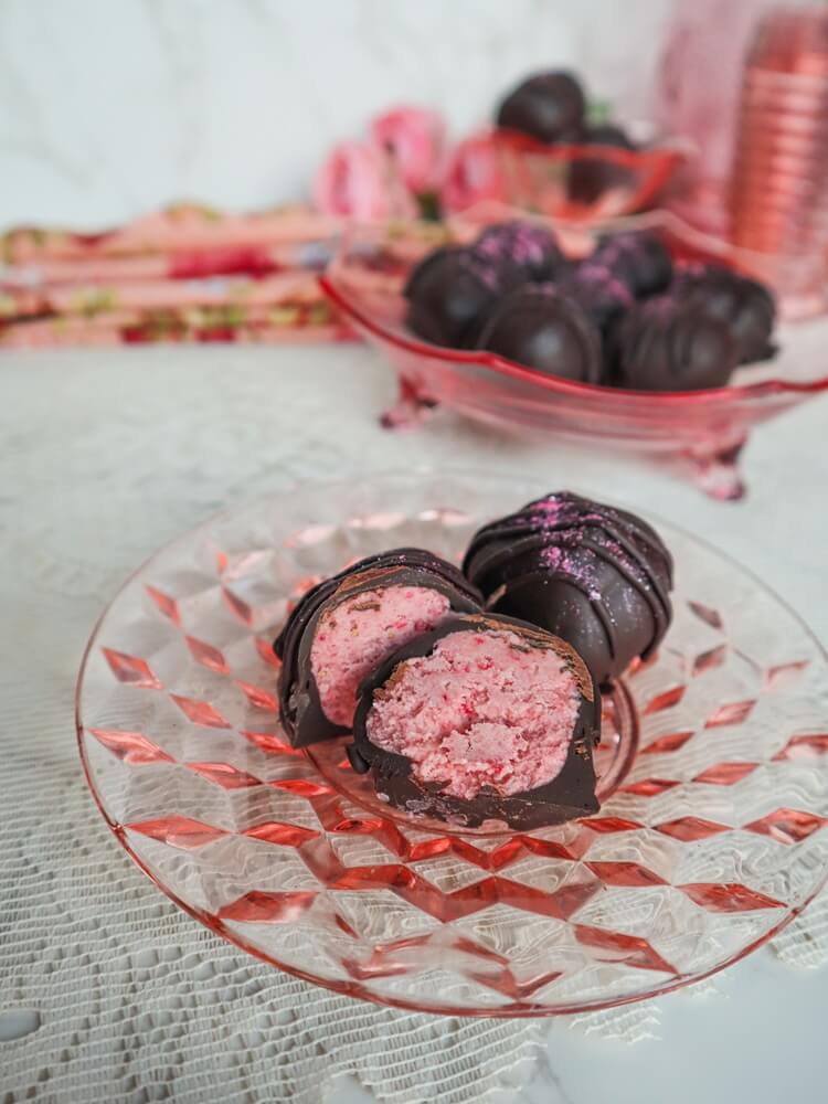 I’ve always loved making candy around Valentine’s Day! I love all things chocolate and so this year I decided to make some Vegan Strawberry White Chocolate Lavender Truffles! Berries and chocolate are one of my favorite combinations and I love lavender and chocolate and lavender and berries as well!